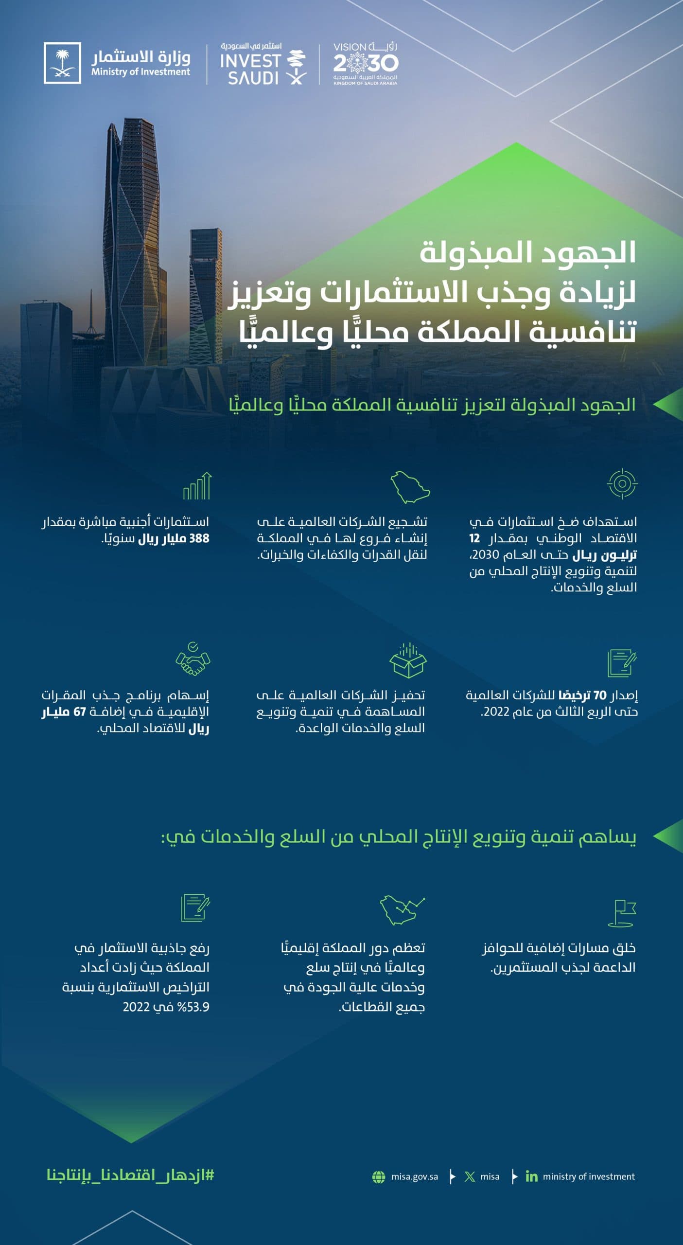 وذلك تحت مظلة رؤية المملكة 2030، وتحقيقاً لمستهدفات ومبادرات الإستراتيجية الوطنية للاستثمار. التي أطلقها صاحب السمو الملكي الأمير محمد بن سلمان بن عبدالعزيز آل سعود ولي العهد رئيس مجلس الوزراء ـ حفظه الله-.