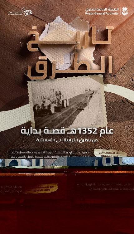وكشفت الهيئة العامة للطرق بمناسبة اليوم الوطني السعودي عن معلومة تاريخية هامة؛ إذ أكدت أن الطرق الإسفلتية دخلت المملكة عام 1352 هـ، أي بعد عام واحد فقط من توحيد المملكة على يد الملك عبدالعزيز آل سعود – طيب الله ثراه.