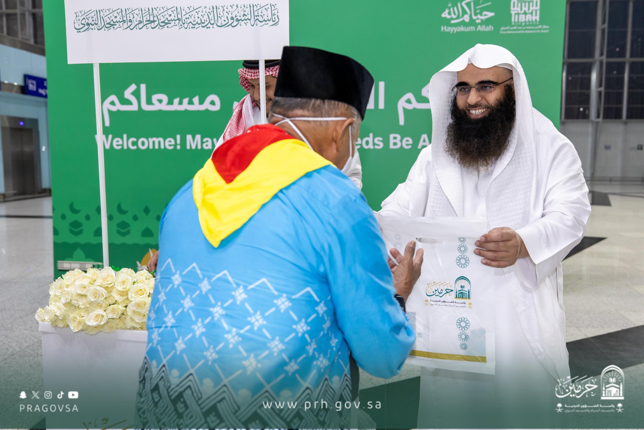 نفّذت رئاسة الشؤون الدينية بالمسجد الحرام والمسجد النبوي مبادرة “بشائر الوصول”، برعاية وحضور مساعد الدكتور محمد بن أحمد الخضيري؛ رئيس الشؤون الدينية بالمسجد النبوي، وذلك تزامنًا مع بدء توافد أولى رحلات صيوف الرحمن القادمين من خارج المملكة لأداء مناسك موسح الحج 2026، عبر مطار الأمير محمد بن عبدالعزيز الدولي بالمدينة المنورة.