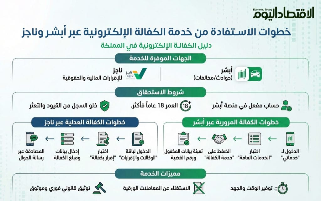 إنفوجراف| خطوات الاستفادة من الكفالة الإلكترونية عبر أبشر وناجز