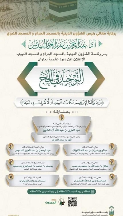 تقام الدورة تحت عنوان “التوحيد في الحج” وتبدأ فعالياتها غدًا الأحد وتستمر لمدة أسبوع.