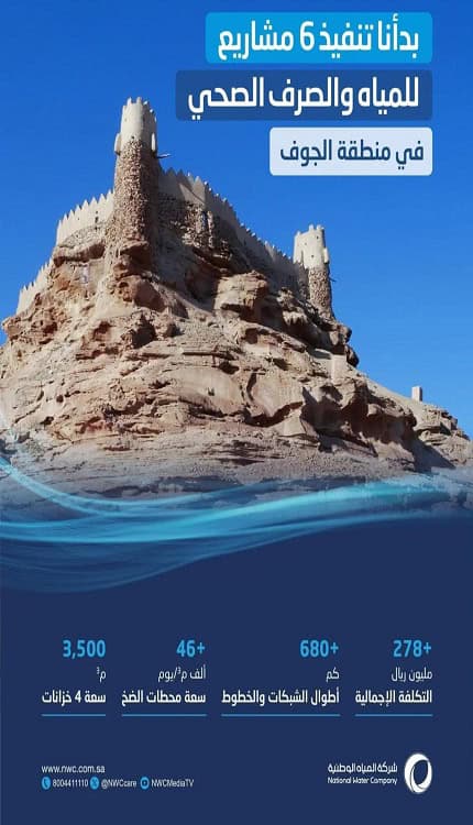 شركة المياه الوطنية تنفذ 6 مشاريع لخدمات المياه والصرف الصحي في الجوف
