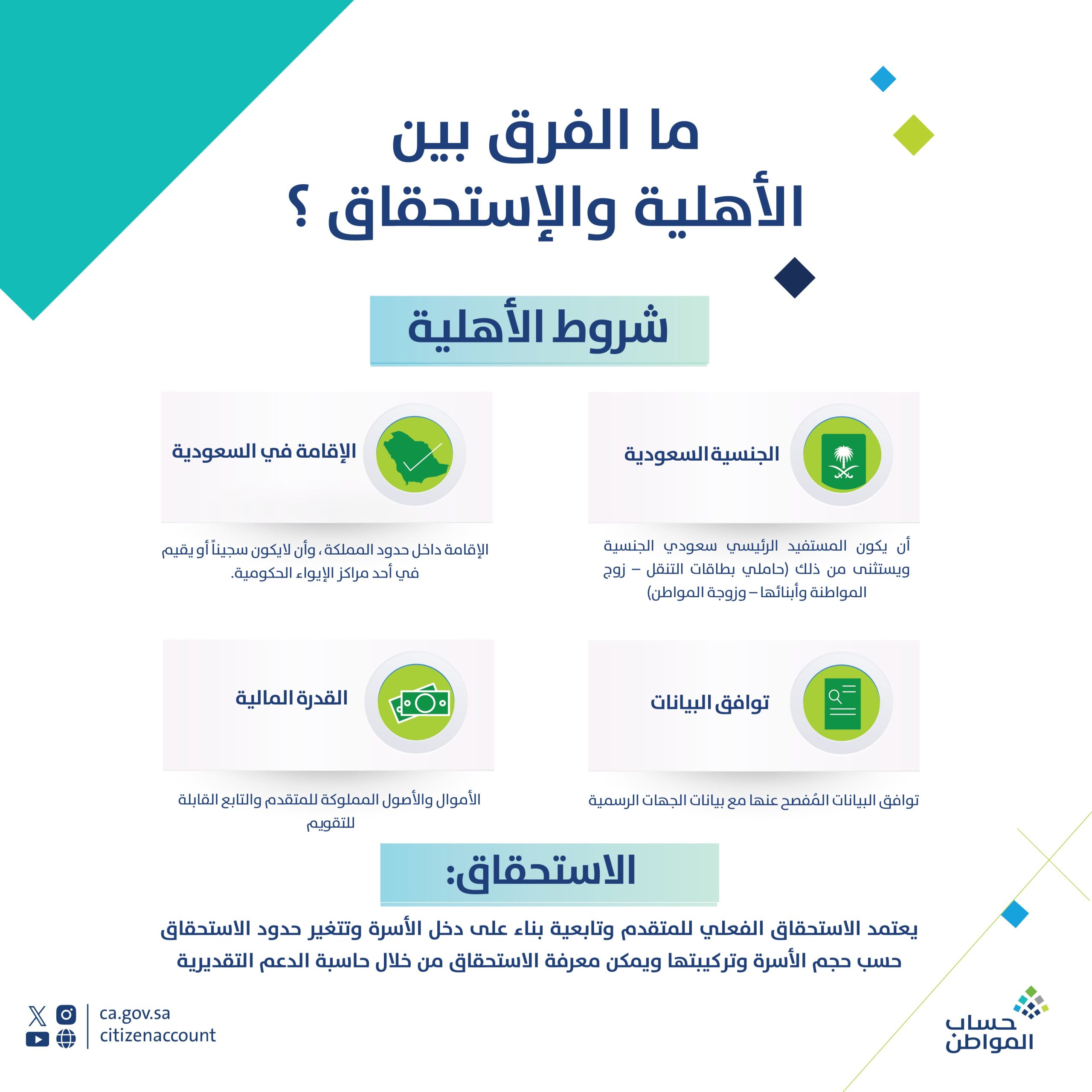 علاوة على ضمان وصول الدعم في موعد صرف حساب المواطن المحدد دون تأخير، شريطة انطباق شروط الأهلية.