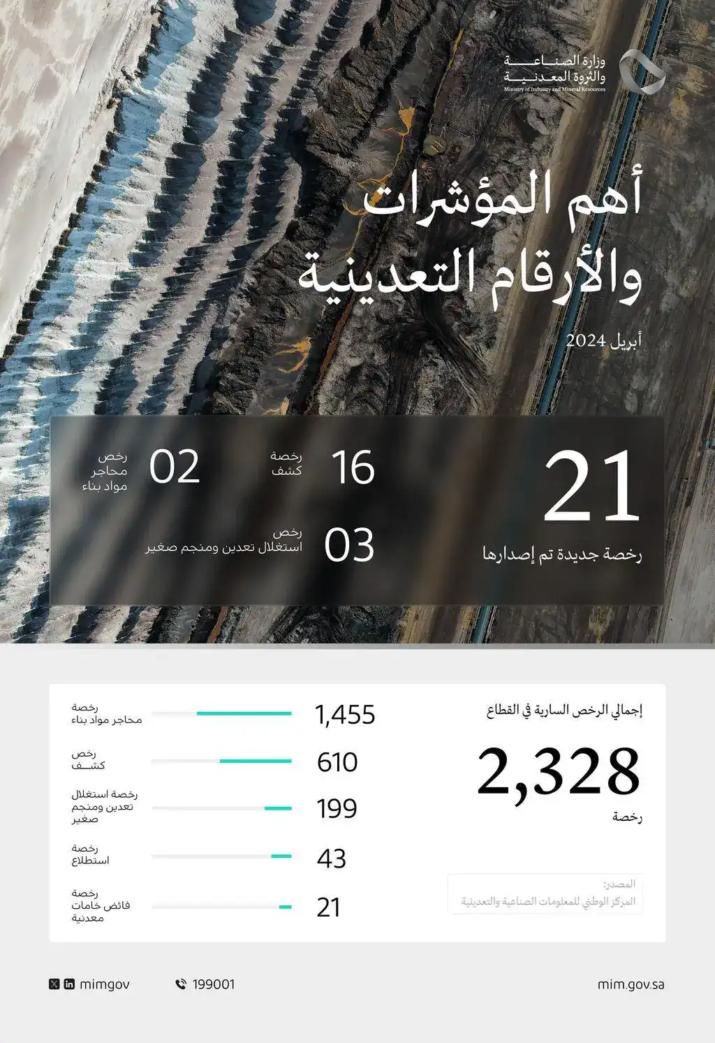 وزارة الصناعة تصدر 21 رخصة تعدينية خلال أبريل 2024