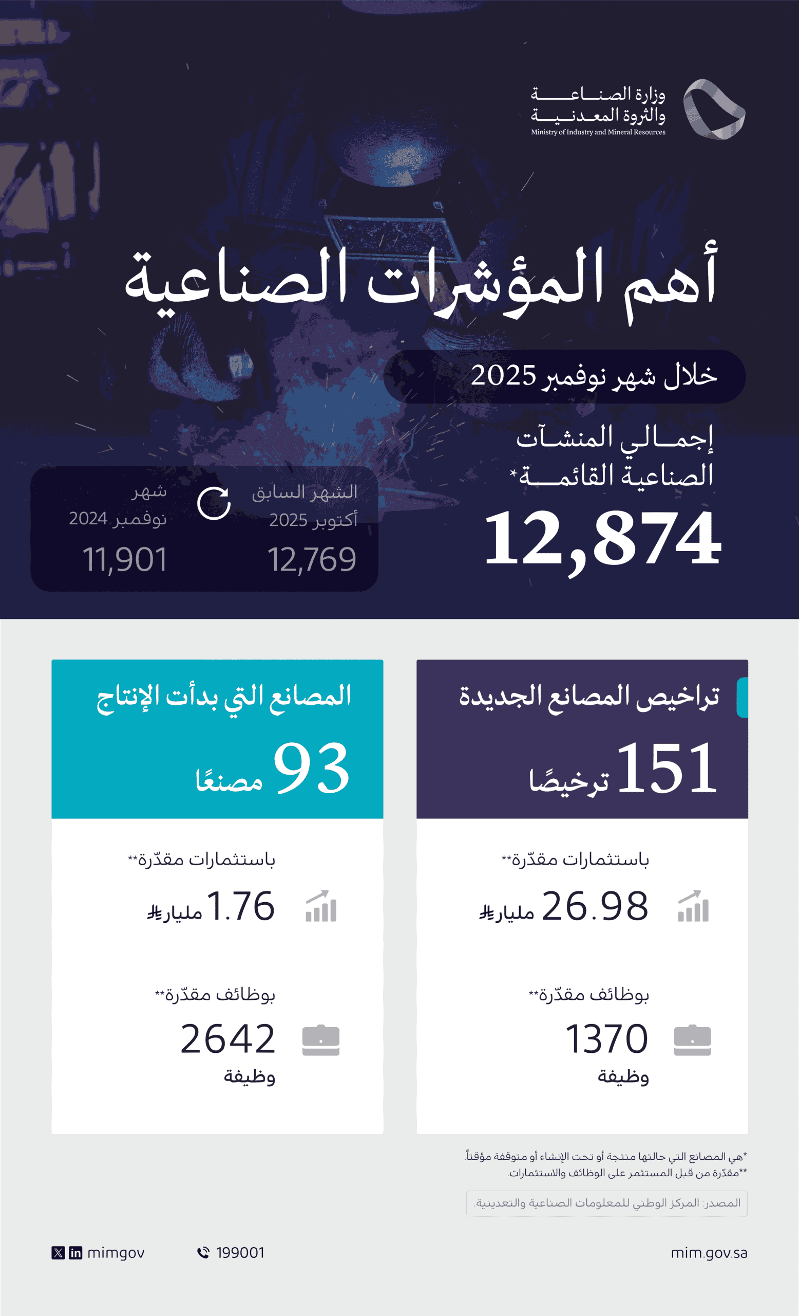 مع فرص وظيفية تقدَّر بـ 2.642 وظيفة جديدة، ما يعكس استمرار توسُّع القاعدة الصناعية في المملكة، وارتفاع وتيرة دخول المصانع إلى حيِّز التشغيل الفعلي.