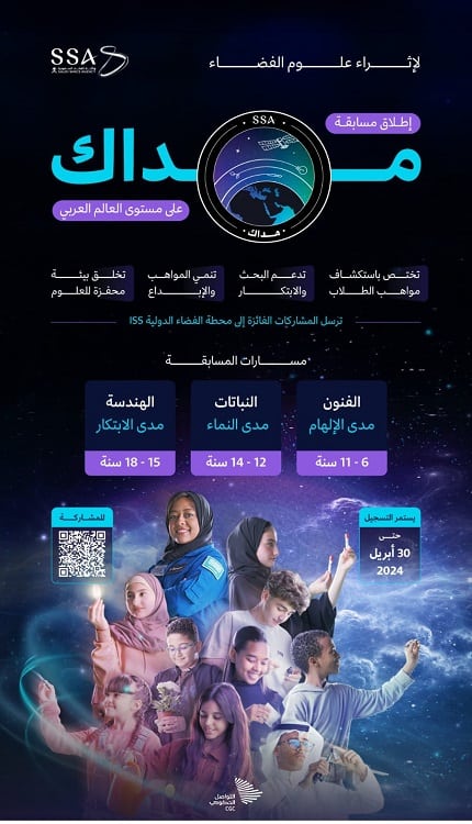 أطلقت وكالة الفضاء السعودية مسابقة بعنوان “مداك” تهدف إلى إثراء المساهمة العربية في علوم الفضاء للطلبة على مستوى العالم العربي.